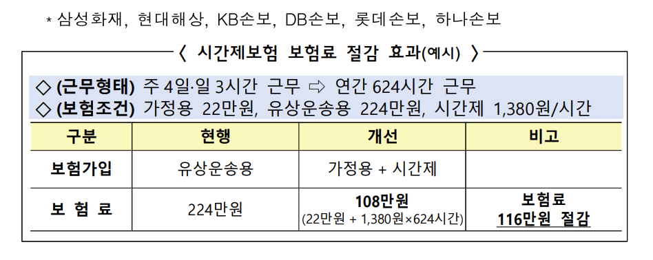 또한 단체 할인 할증제도도 도입하여 자체적으로 안전교육을 통해 사고 예방에 주의를 기울이던 단체들은 이제 할인을 적용받게 되었고 파트타임 배달라이더가 선택을 하던 시간제 보험, 즉 가정용으로 가입을 했으나 일시적으로 배달 등에 사용하려 할때 기간한정으로 유상운송보험을 추가하던 것이었는데 그간 이런 시간제보험을 판매하는 보험사가 적고 제한적이어서 활성화가 안되던 부분을 개선하고자 시간제보험 판매 보험사를 확대해서 보험료 부담을 완화시키겠다는 것입니다