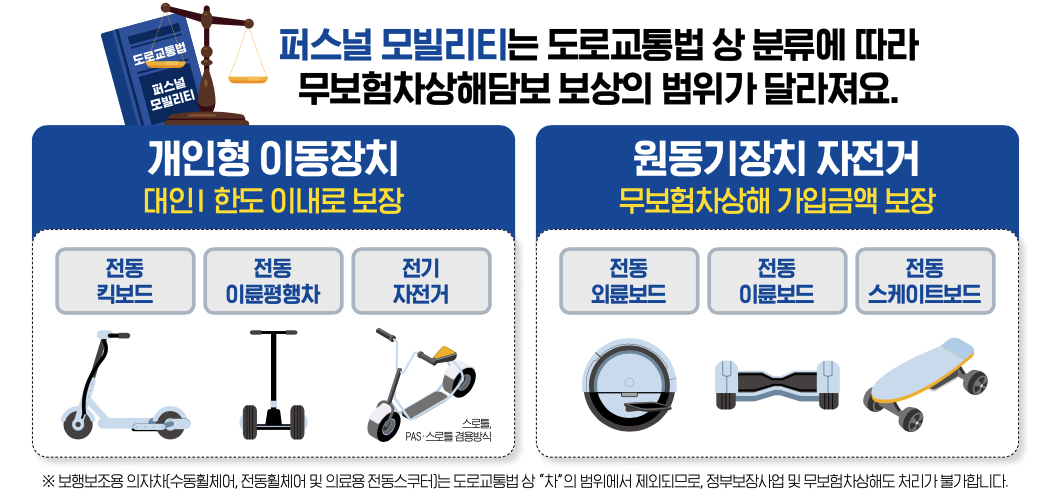 전동킥보드에 의해 상해를 입은 경우 무보험차상해로 보상처리합니다